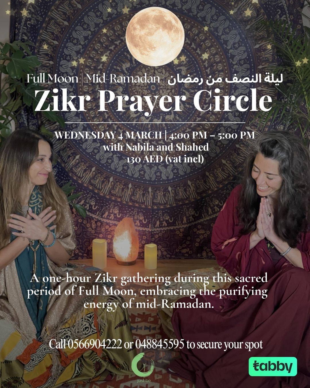 A one-hour Zikr gathering during this sacred period of Full Moon, embracing the purifying energy of mid-Ramadan.